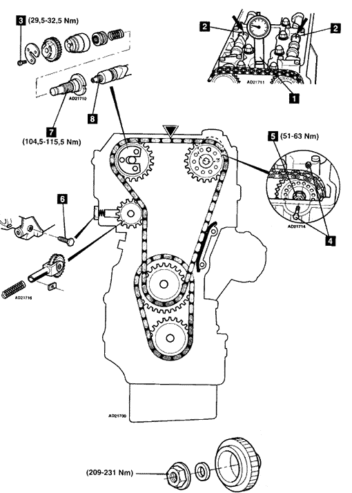 7.在安装凸轮轴调节器毂7的过程中,在凸轮轴螺纹8上涂上合适的螺纹锁止剂。 注意:如果进行了凸轮轴调节器修理,在安装凸轮轴前要等待大约2小时。 |