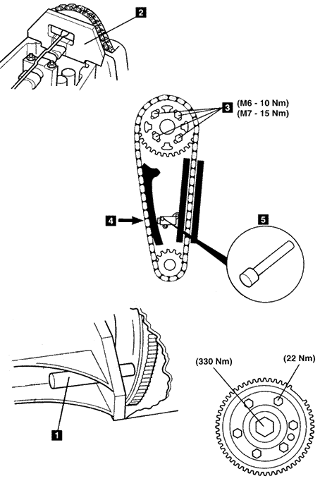 6.插入锁止销以固定张紧器柱塞5。工具号11 4 120。