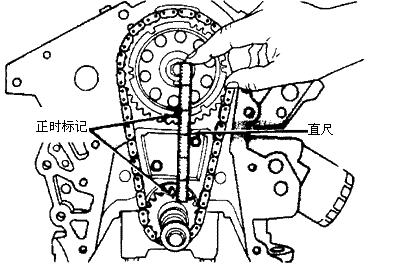 一、拆卸 1.拆下正时链盖。检查正时链是否拉长,确定是否需要更换。 2.在凸轮轴正时链上链节附近定位比例尺,这样能测量其运动。在凸轮轴链轮螺栓上放置扭力扳手。按发动机转动的方向,在气缸盖安装时在凸轮轴链轮上施加41牛顿·米的扭矩,当气缸盖拆下时在凸轮轴链轮上施加20牛顿·米的扭矩。注意比例尺上的读数。 注意:对凸轮轴链轮螺栓施加扭矩时,不要使曲轴运动。如有必要,固定住曲轴。 3.在反方向施加相同的扭矩并注意比例尺上正时链的移动。如果移动超过3.175毫米,更换正时链。 4.为拆下正时链,转动曲轴以对准正时标记。拆下凸轮轴链轮固定螺栓、垫圈、凸轮轴链轮,正时链和曲轴链轮。