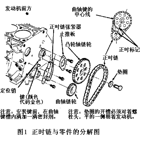 前盖与正时链 注意:为了得到更换零件的间隙,可能需要拆卸发动机。 拆卸 1.拆下油尺与辅助传动带。拆下曲轴皮带轮螺栓与垫圈。使用拉出器(T77F-4220-B1),拆卸曲轴皮带轮。使用油封拆卸器(T74P-6700-A),从前罩上拆下油封。 注意:由于油底壳密封靠着前盖,厂家建议在安装时拆下油底壳以得到正确的密封。 2.拆下油底壳。拆下固定螺栓和前罩。为了判断零件的磨损程度,应该检查正时链挠度。 3.逆时针转动曲轴(从发动机前面看去)以拉紧正时链左侧。将气缸体上的参考标记置于正时链的中点。测量从标记到正时链的距离。 4.反方向转动曲轴以拉紧正时链的右侧。用力使正时链向外并测量正时链与参考点之间的正时带挠度。 5.如果正时带挠度超过1/2英寸(12.7毫米),更换正时链与链轮。转动曲轴并对齐正时标记。拆下凸轮轴链轮固定螺栓与垫圈。 6.作为一个整体拆下凸轮轴链轮,曲轴链轮和正时链总成。
