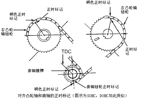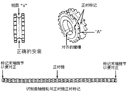 注意:安装曲轴链轮的两个半轮,使轮毂相对。见下图。