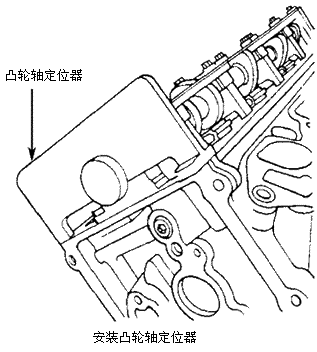 安装 1.安装隔板、凸轮轴链轮和紧固螺栓。确保部件被安装在原来的位置上。拧紧螺栓到规定扭矩。 2.如果部件与先前的安装位置不同,在凸轮轴的平面区安装凸轮轴定位器适配器(T92P-6256-A)。见下图。