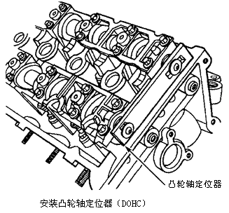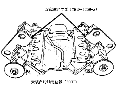 小心:标记部件位置以作为重装时的参考。部件必须装入初始位置。 3)在凸轮轴平面上安装凸轮轴定位器(T92P-6256-A)。