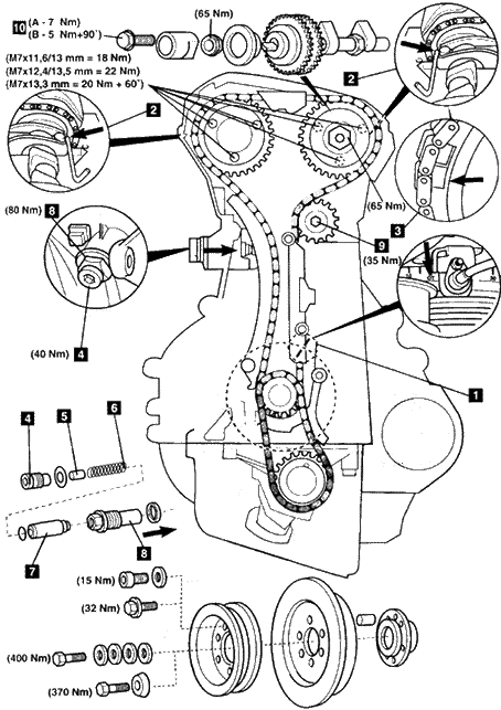 注意:在维修过程中,A类应该用B类来更换。B类只能使用一次。 12.在装配过程中要润滑曲轴皮带轮中心螺栓和垫圈。 |