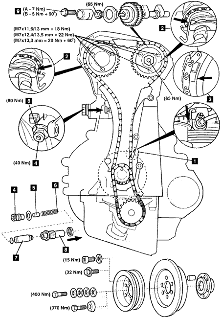 注意:在维修过程中,A类应该用B类来更换。B类只能使用一次。 12.在装配过程中要润滑曲轴皮带轮中心螺栓和垫圈。 |