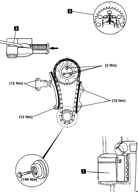 1.确保飞轮正时标记对准时曲轴在1号气缸的上止点(如图中1所示)。