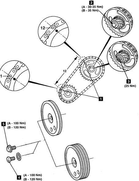 2.确保正时标记间有12个链节滚子。