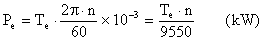 b. 有效功率:指发动机通过曲轴或飞轮对外输出的功率,通常用Pe表示,单位为kW。有效功率同样是曲轴对外输出的净功率。它等于有效扭矩和曲轴转速的乘积。发动机的有效功率可以在专用的试验台上用测功器测定,测出有效扭矩和曲轴转速,然后用下面公式计算出有效功率。
