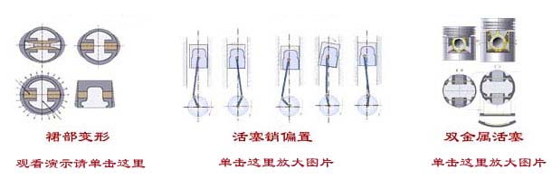 | 为了减小铝合金活塞裙部的热膨胀量,有些汽油机活塞在活塞裙部或销座内嵌入钢片,牵制了裙部的热膨胀变形量。 |