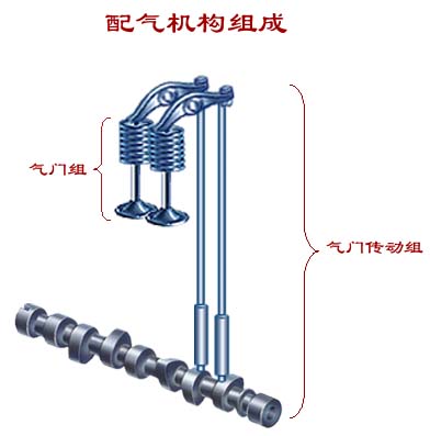 配气机构包括气门组和气门传动组。
