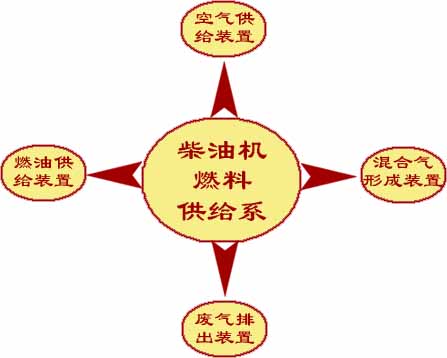 燃油供给装置:柴油箱、输油泵、柴油滤清器、喷油泵、喷油器等。