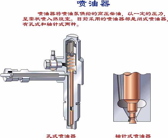 孔式喷油器适应于直接喷射燃烧室,喷射压力高,喷孔数1~8个,孔径0.2~0.8mm。