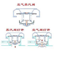 | 当冷却水凝结,散热器内压力降低到某一值时,空气阀打开,空气进入散热器内使其压力升高。 |