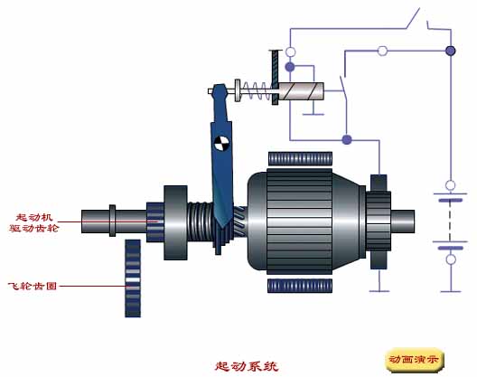 电动机起动是用电动机作为机械动力,当将电动机轴上的齿轮与发动机飞轮周缘的齿圈啮合时,动力就传到飞轮和曲轴,使之旋转。电动机本身又用蓄电池作为电源。