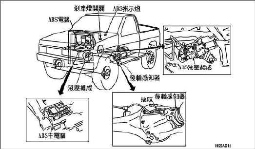 (1).當ABS系統偵測到故障時,儀錶板上"ABS"燈會亮。