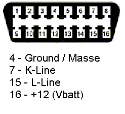 between +12 and the pin where the K-line is on newer models. So