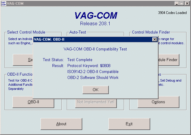 the OBD-II compatibility test in VAG-COM!