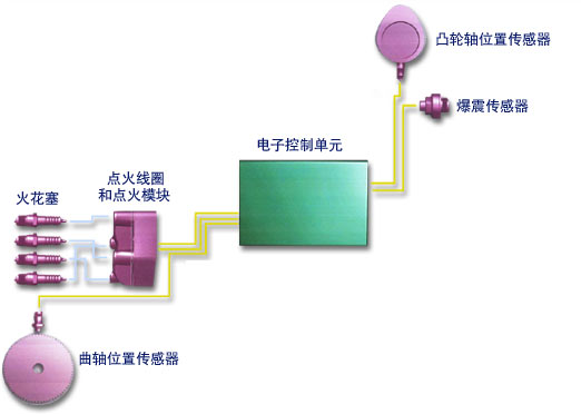 点火控制系统由传感器、电子控制单元和执行器组成。