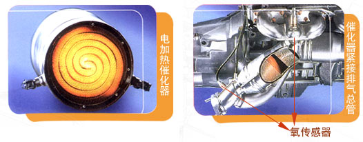 进一步改进三元催化器,使催化器紧接排气总管、浓混合气加热和引入二次空气。