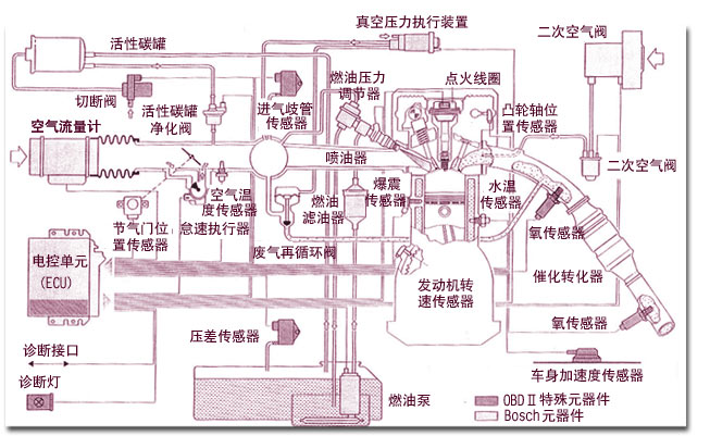 带有在集成诊断系统OBD II 的发动机管理系统