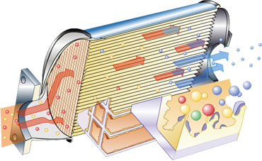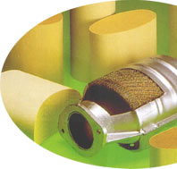 | 用真空金属化的方法加到陶瓷表面的,有害物质与催化材料接触时就会被转化。在氧催化转化器中,大约80%未燃烧或部分燃烧的HC被转化成水蒸气和CO2,有害的CO被转化成CO2,氮氧化物NOx不能被氧传感器转化,因此采用废气再循环的方法减少NOx排放。 |
