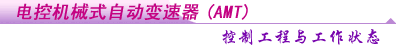 机械式自动变速器是对传统干式离合器和手动齿轮变速器进行电子控制实现自动换档,其控制过程基本是模拟驾驶员的操作。控制单元(ECU)的输入有:驾驶员的意图-加速踏板、档位选择;汽车的工作状态-发动机转速、节气门开度、车速等。控制单元(ECU)根据换档规律、离合器控制规律、发动机
