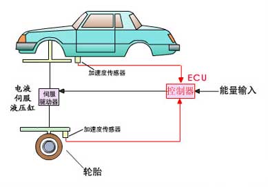 一般由传感器检测系统运动的状态信号,反馈到电控单元ECU,然后由ECU发出指令给执行机构主动力发生器,构成闭环控制。通常采用电液伺服液压缸作为主动力发生器,它由外部油源提供能量. 力发生器产生主动控制力作用于振动系统,自动改变弹簧刚度和减振器阻尼特性参数。主动悬架除了控制振动还可以控制汽车的姿态和高度。