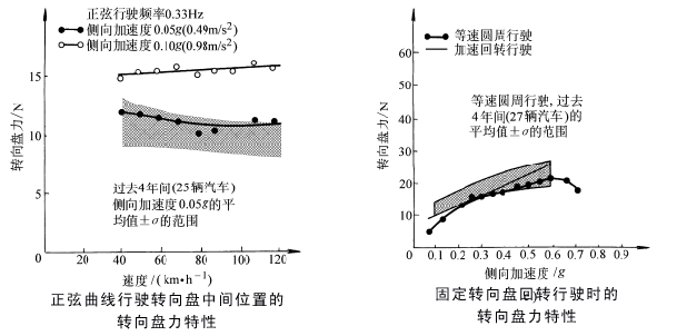 转向盘力随汽车运动状况而变化的规律称为转向盘力特性。汽车转向系应具有良好的转向盘力特性才能完美地完成控制汽车。