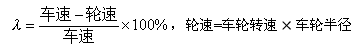 汽车在制动时,车速与轮速之间产生速度差,车轮发生滑动现象。滑动率的定义为: