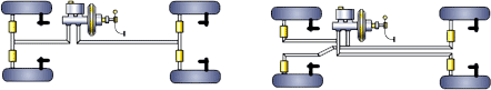 对应于双制动管路的H型(前后)或X型(对角)两种布置形式,四通道ABS也有两种布置形式。