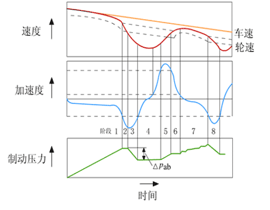 制动控制的参数一般为车轮的减速度、加速度以及滑动率的三者综合。