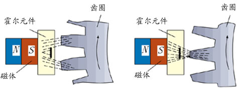 而霍尔式转速传感器就克服了这些缺点。其能保证在很低的速度下都有很强的信号。霍尔式转速传感器是利用霍尔效应的原理制成的。霍尔效应是指在一个矩形半导体薄片上有一电流通过,此时如有一磁场也作用于该半导体材料上,则在垂直于电流方向的半导体两端,会产生一个很小的电压,该电压就称为霍尔电压。当磁性材料制成的传感器转子上的凸齿交替经过永久磁铁的空隙时,就会有一个变化的磁场作用于霍尔元件(半导体材料)上,使霍尔电压产生脉冲信号。根据所产生的脉冲数目即可检测转速。