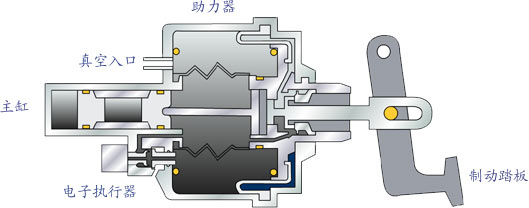 电子控制助力器是自动施加制动力的一种制动系统。自动制动力上升速度很快,大大提高了安全性。