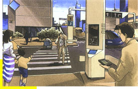 使用道路引导设备帮助老弱病残以保证其安全。车辆上设置相应设备,可通过检测出车辆前方的行人,警告驾驶员或采取自动刹车,以防止行人交通事故。