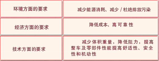 经济与社会的发展对汽车工业提出了高标准的要求。这些要求中最重要的部分可以分为三类,