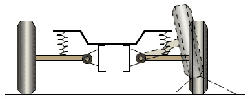 这种悬架如图D-X5-17所示。这种悬架是单横臂和单纵臂(如下图所示)独立悬架的折衷方案。其摆臂绕与汽车纵轴线具有一定交角的轴线摆动,选择合适的交角可以满足汽车操纵稳定性要求。这种悬架适于做后悬架。 |