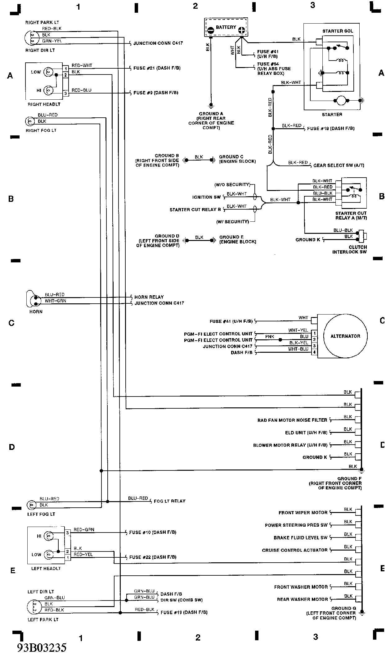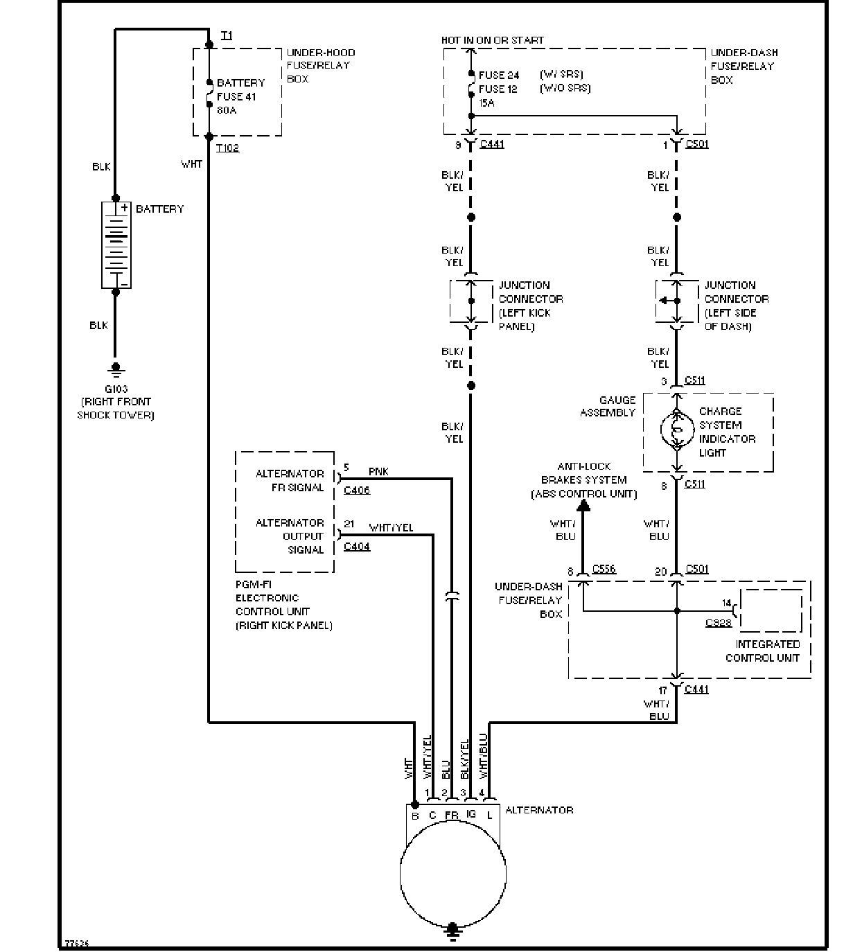 发动机室大灯、交流发电机线路图
