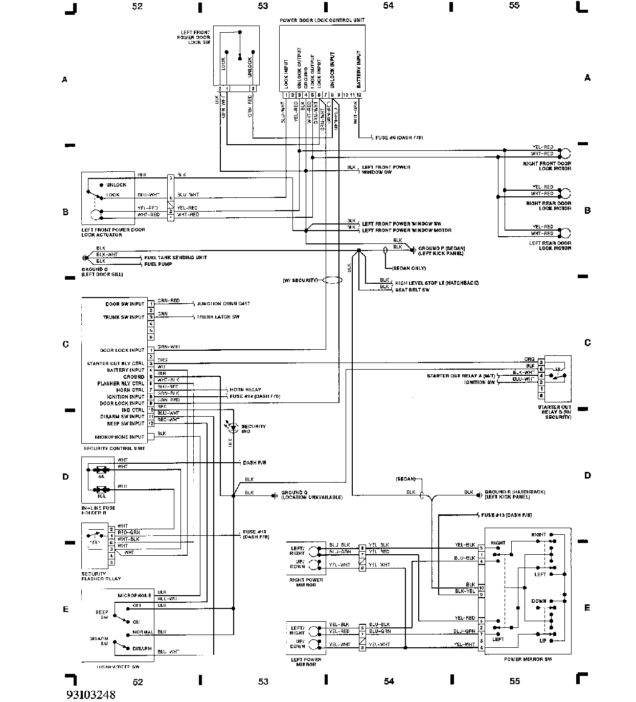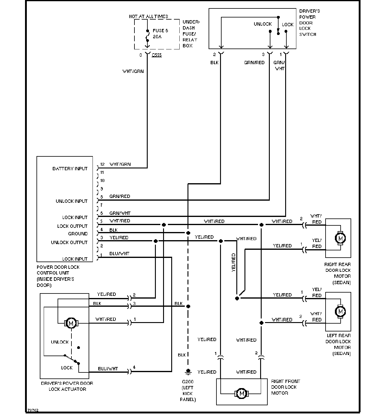 电动门锁控制单元、电动后视镜开关线路图