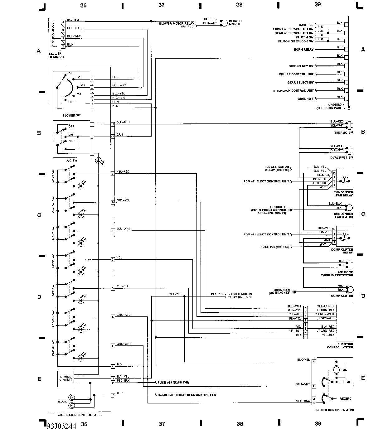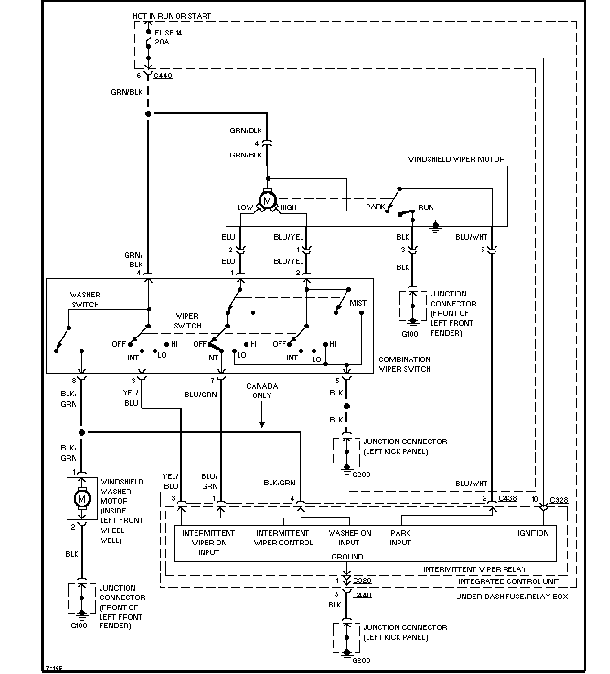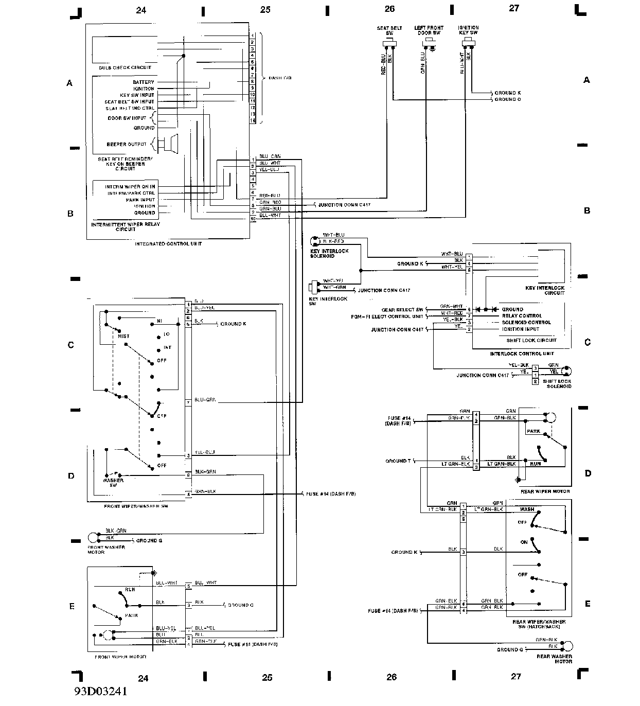 集成控制单元、雨刮清洗器系统线路图