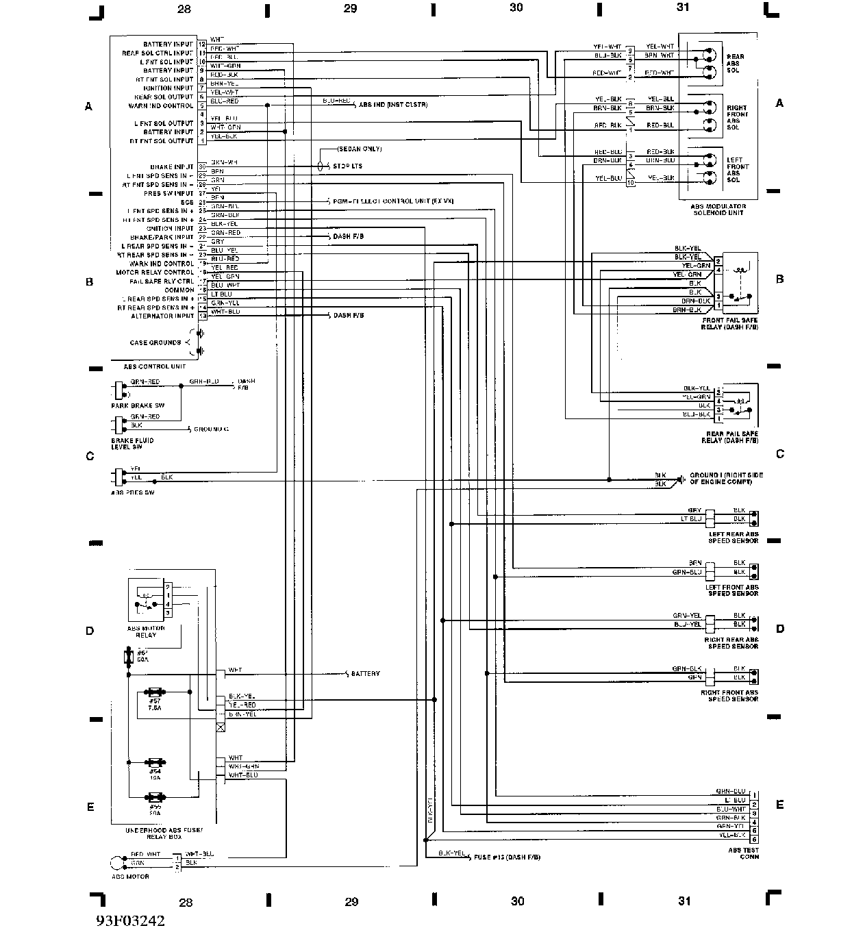 ABS控制单元线路图(发动机罩下的保险丝盒)