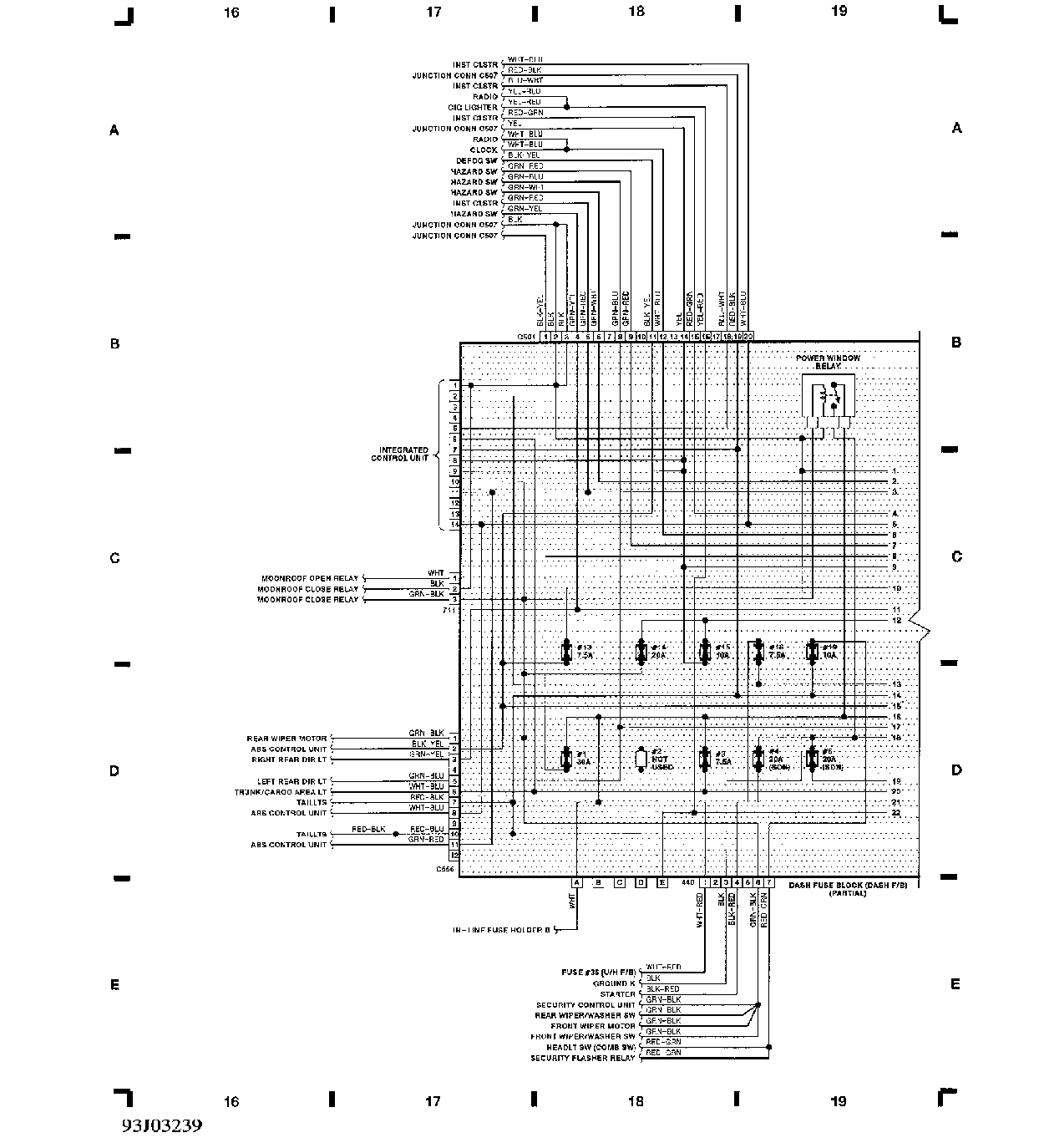 仪表板保险丝盒(部分)线路图
