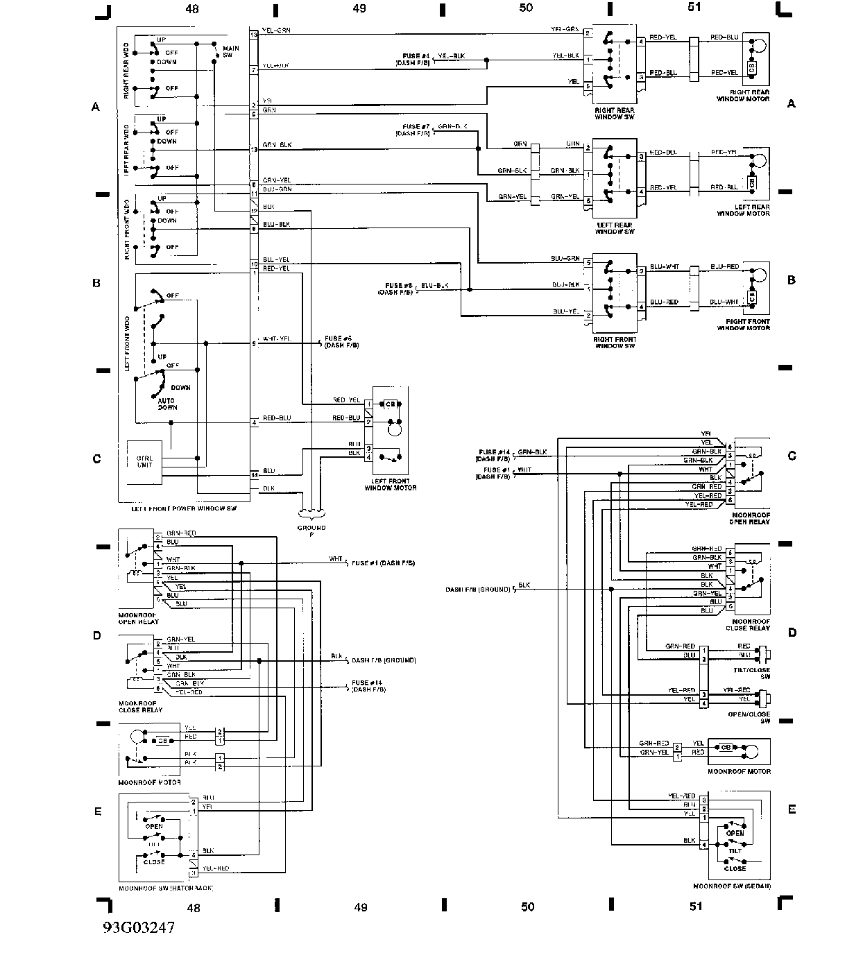 天窗开关、电动窗开线路图