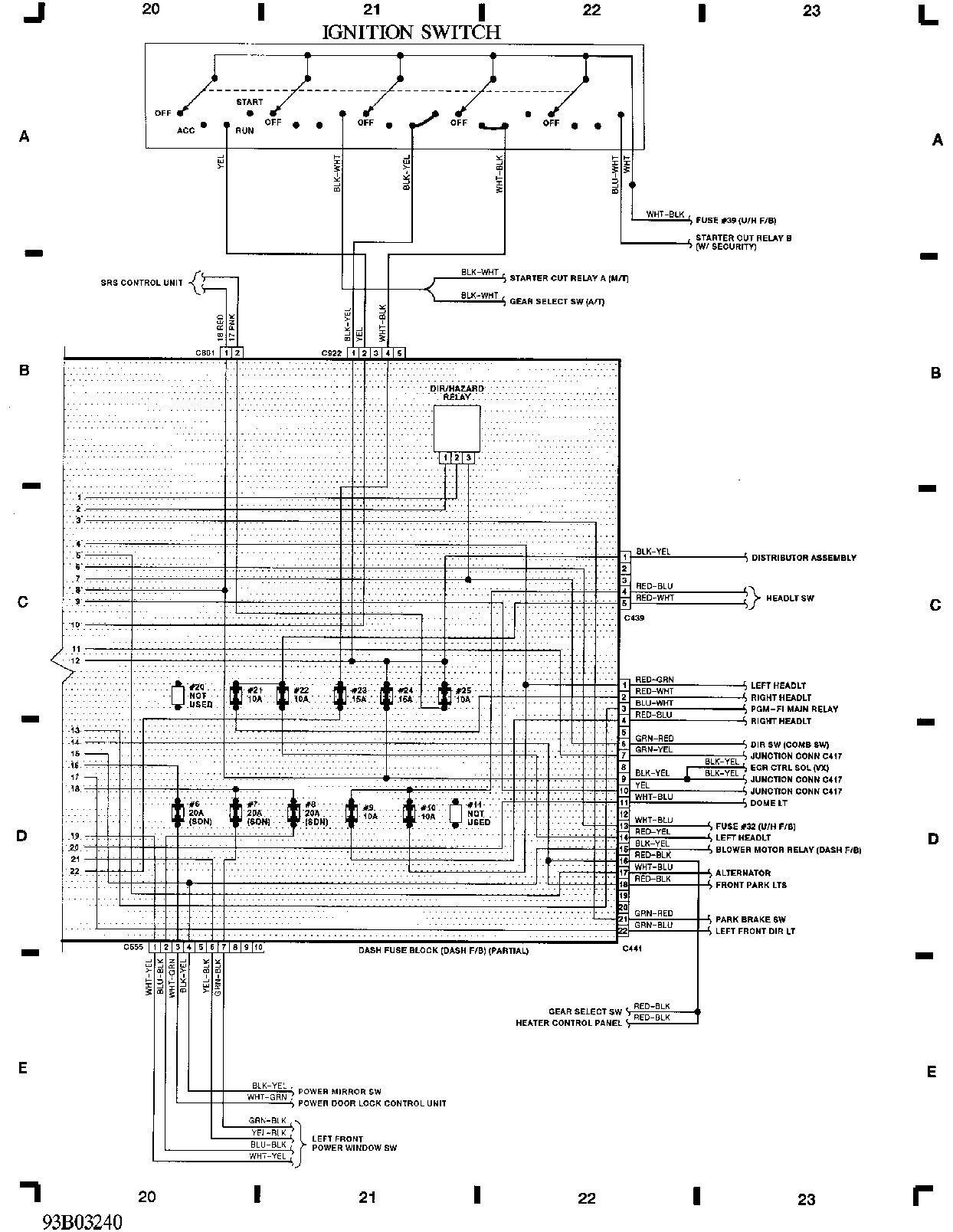 仪表板保险丝(部分)、点火开关线路图