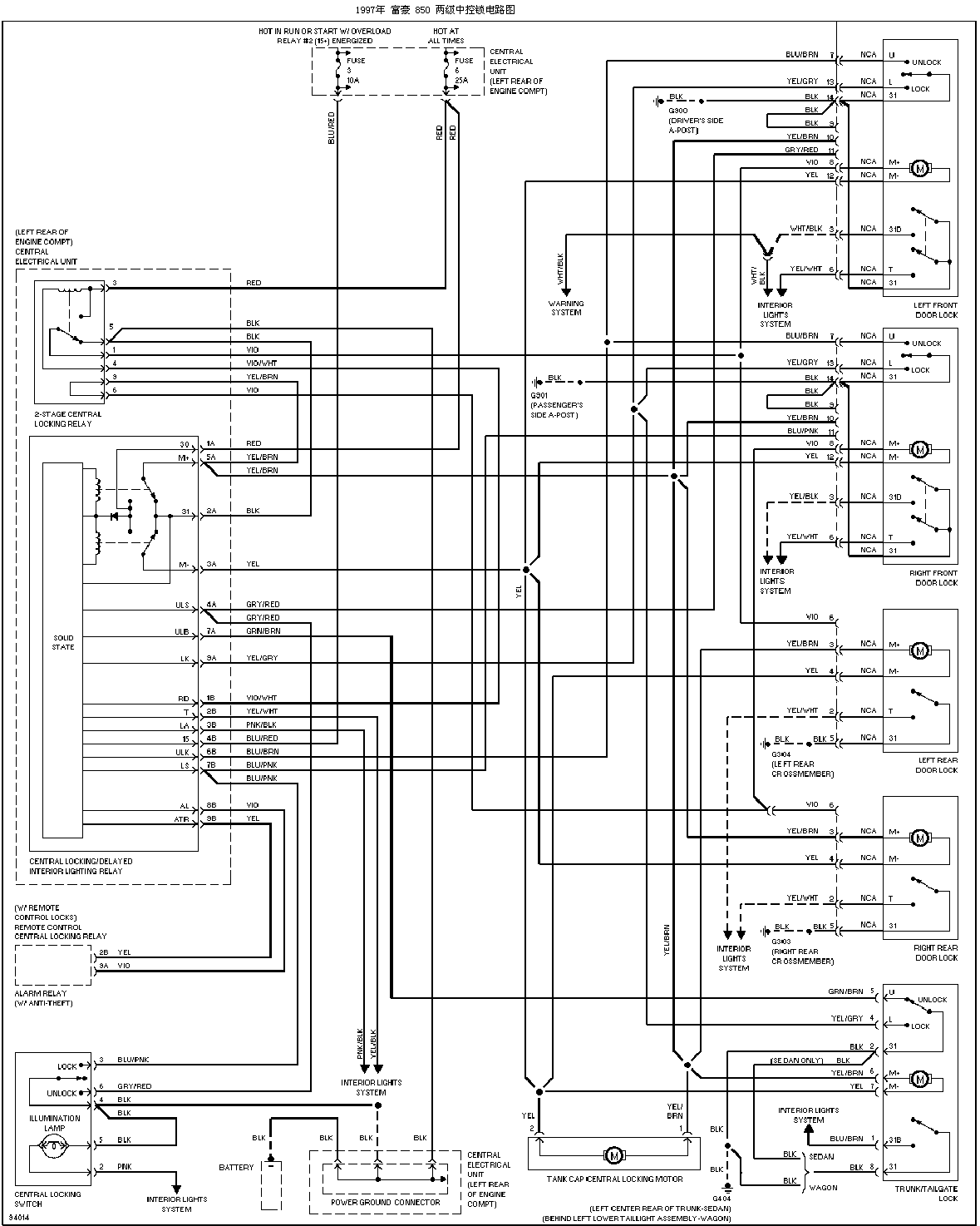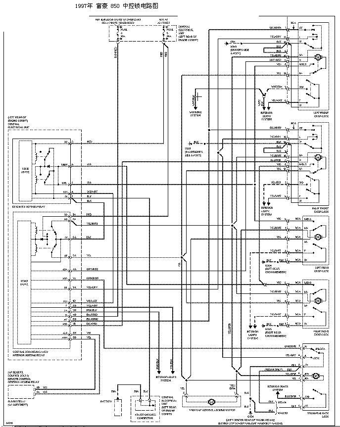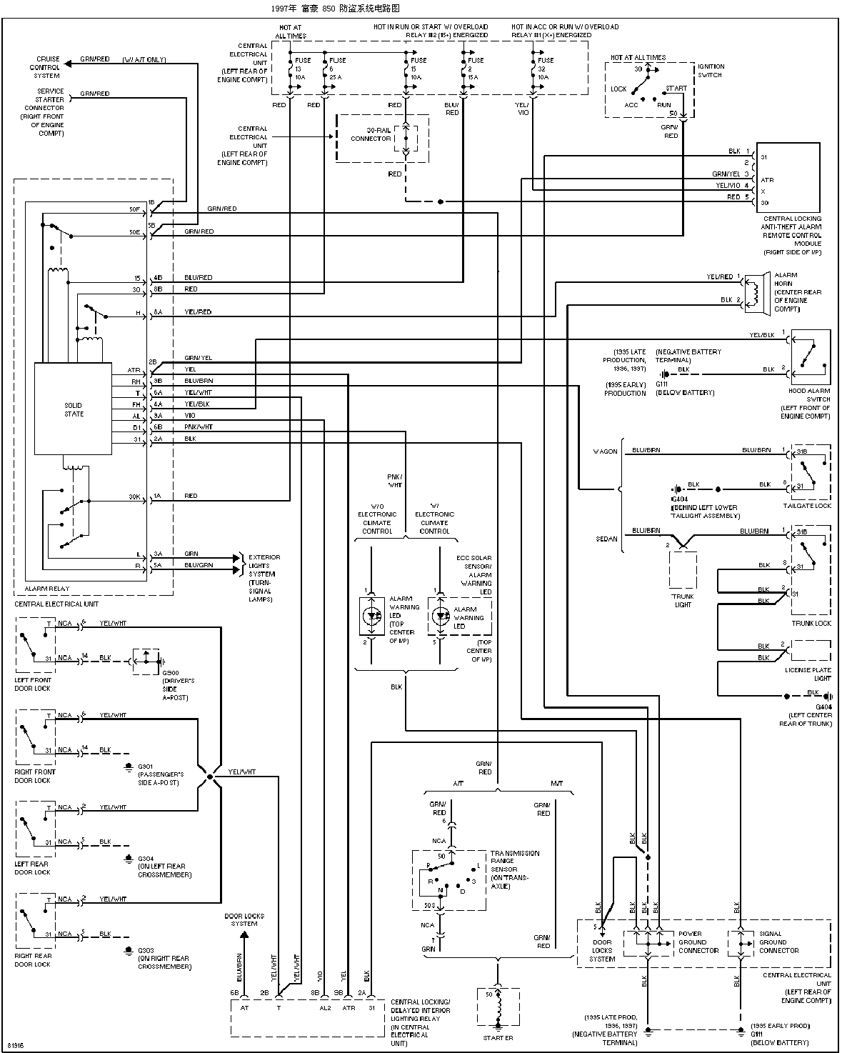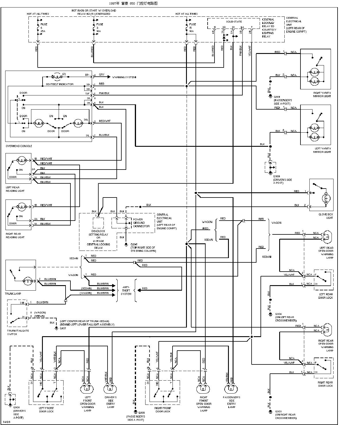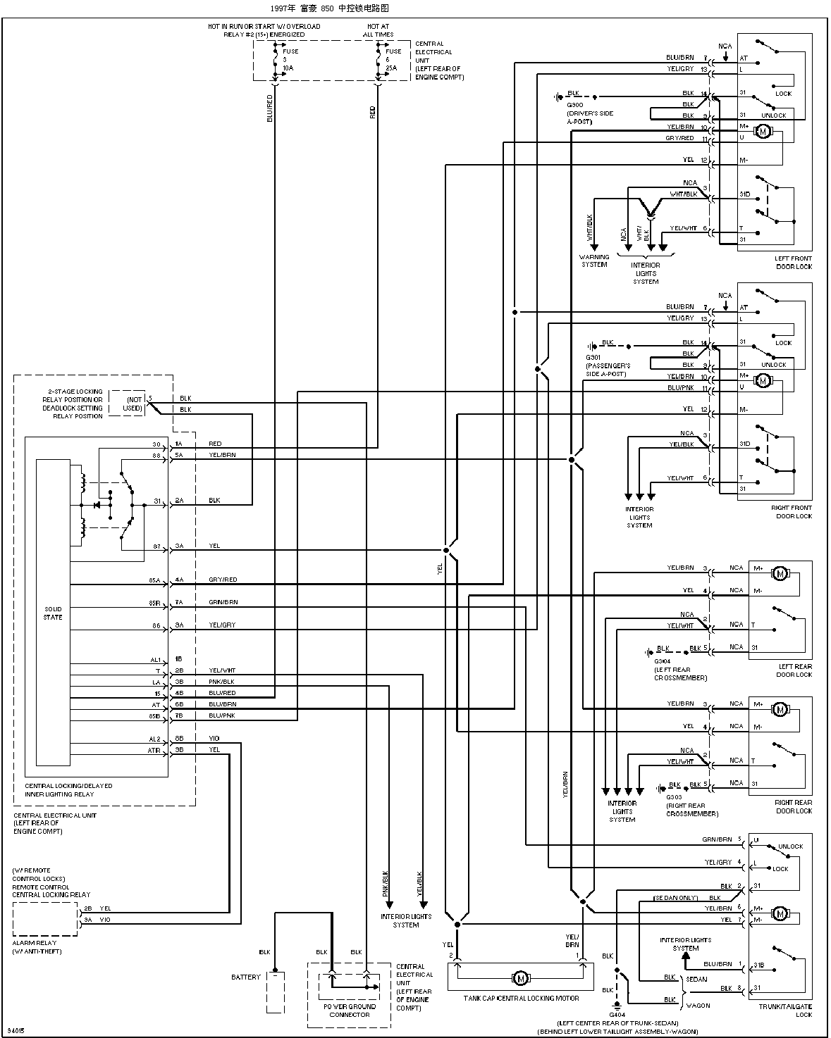 | 防盗系统电路图 | 中控门锁电路图 (带)(无) 锁死装置 |