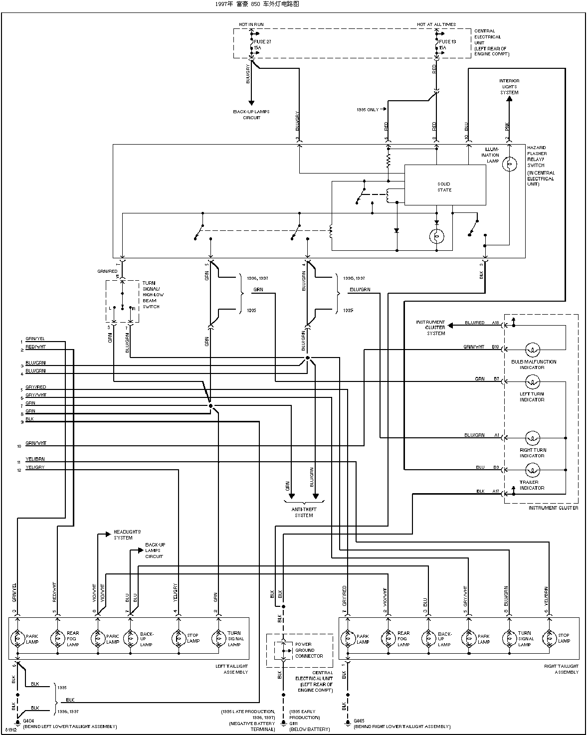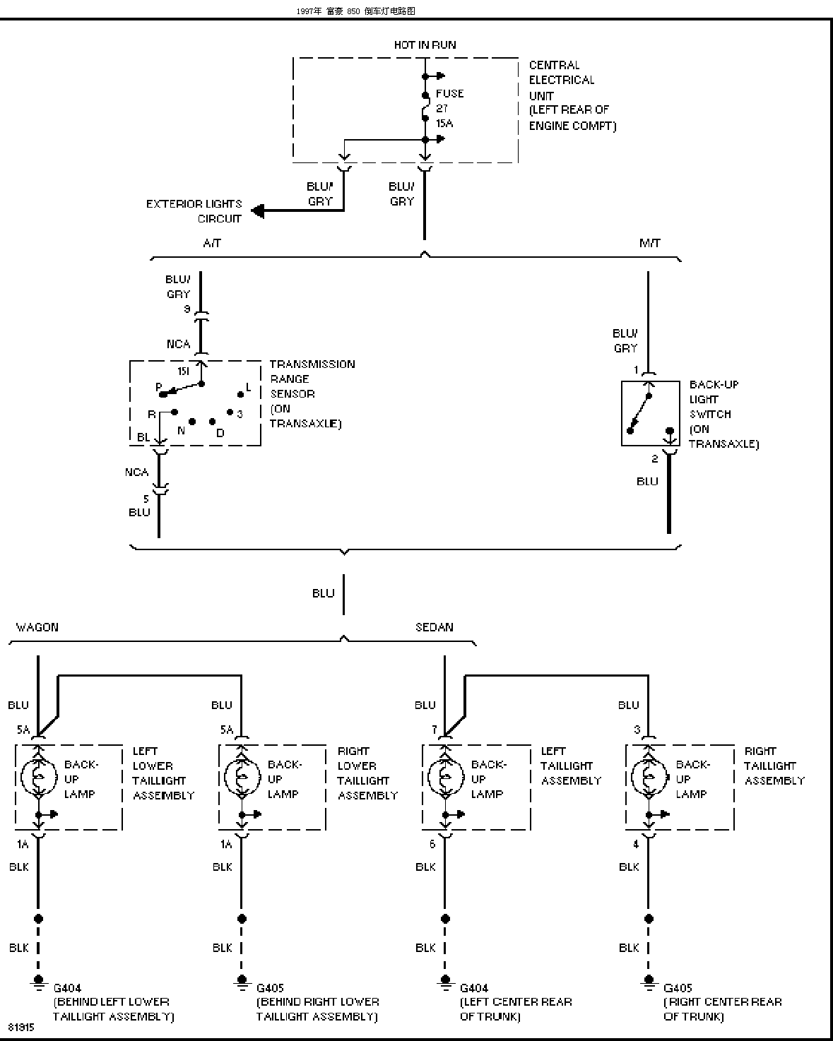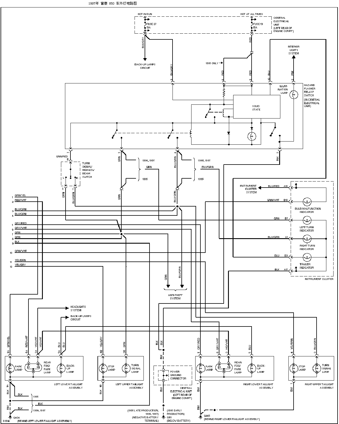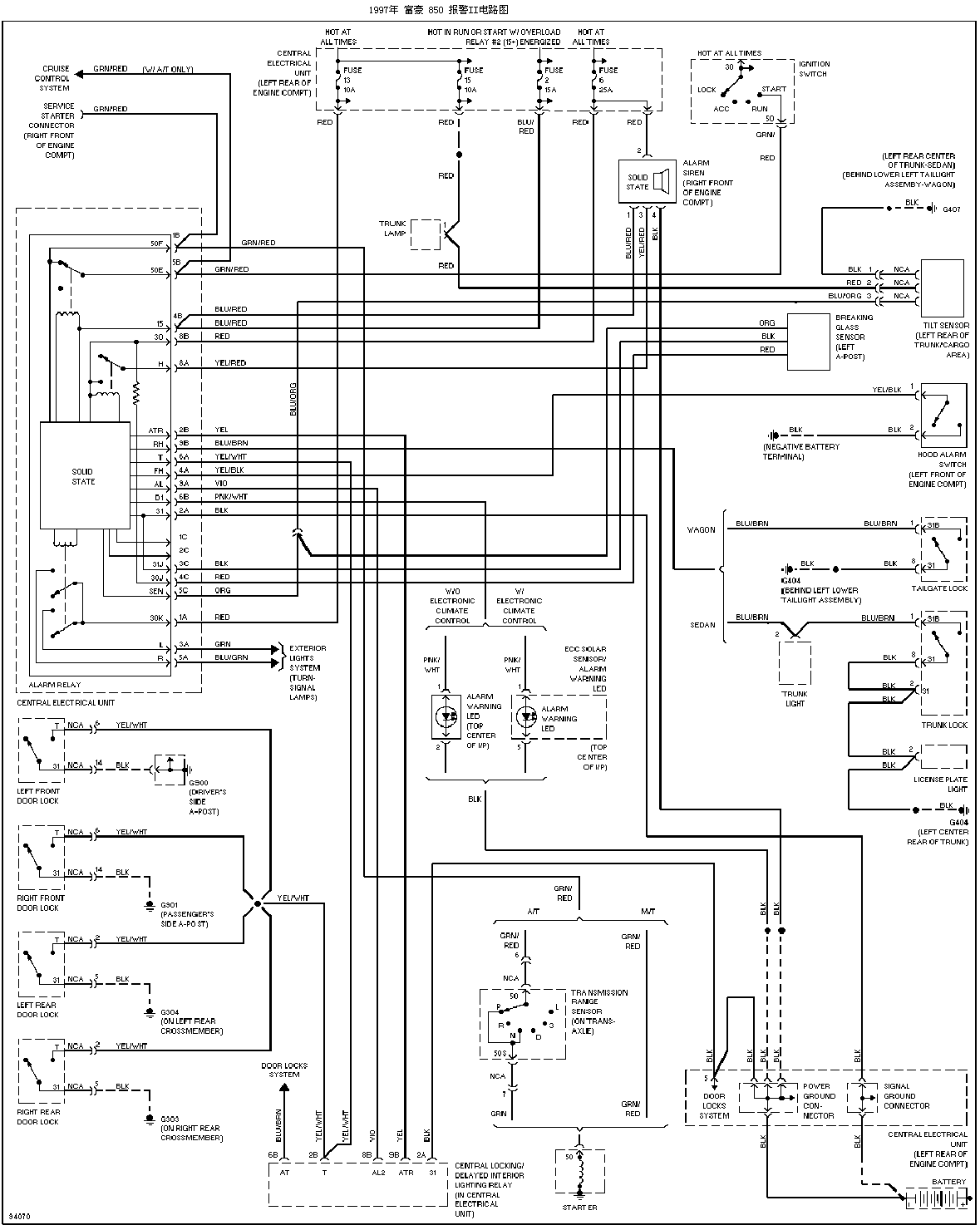 | 防盗系统电路图 | 中控门锁电路图 (带)(无) 锁死装置 |