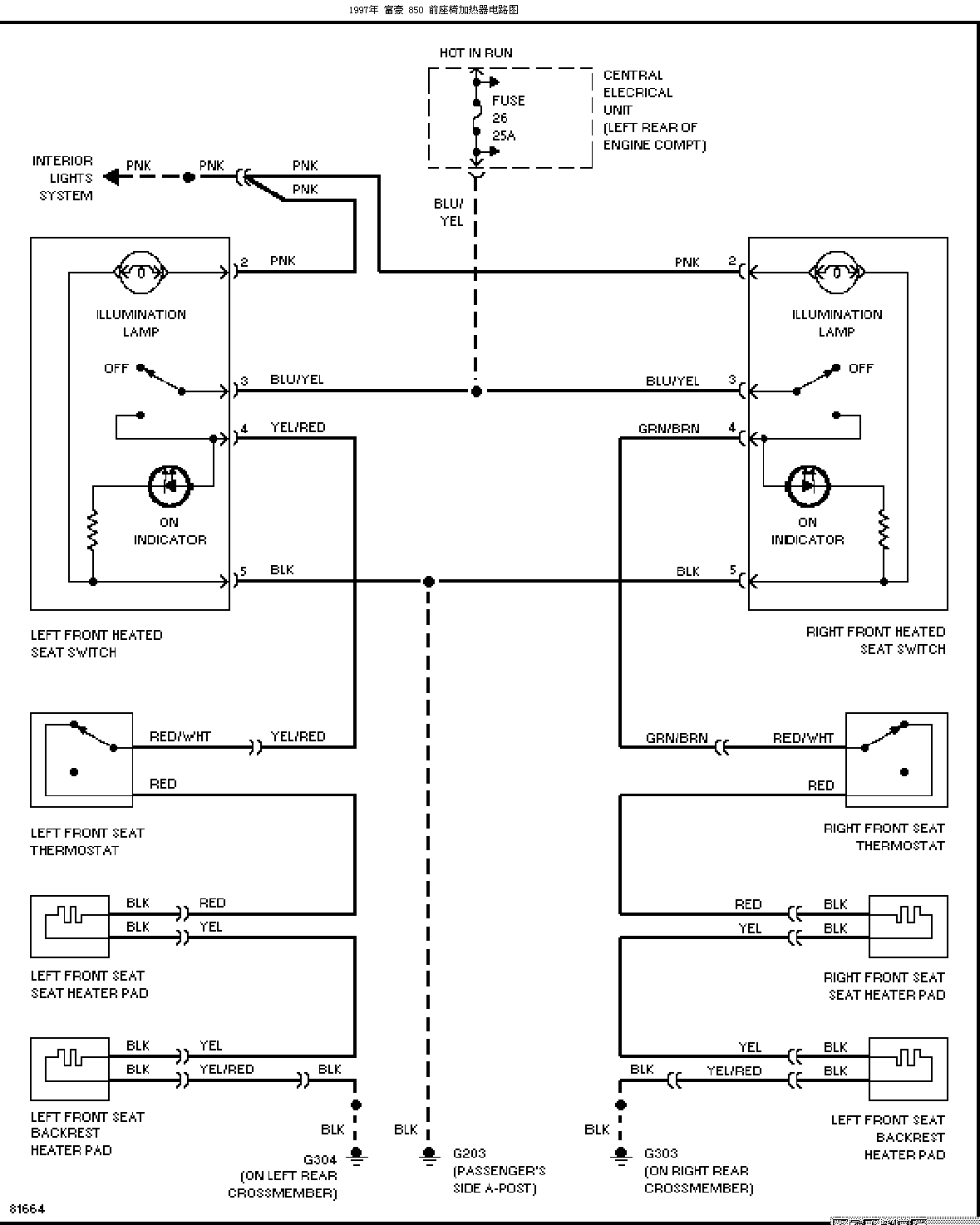 | 电动车窗电路图 | 后加热座椅电路图 |