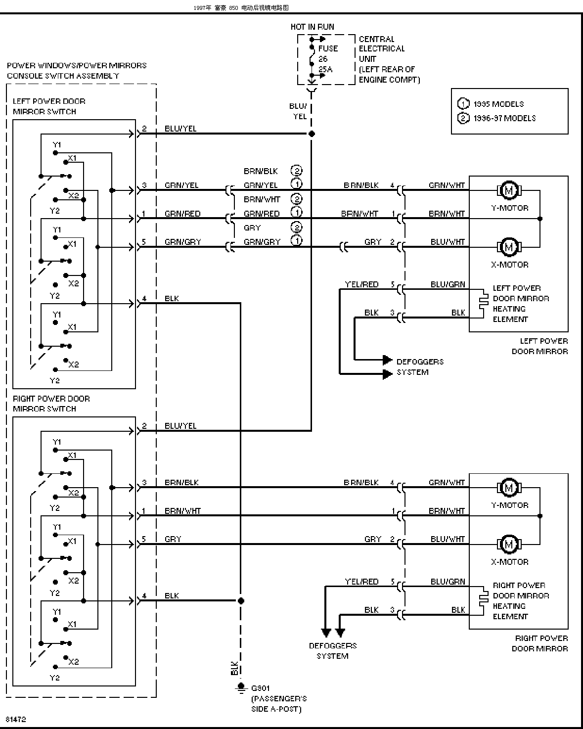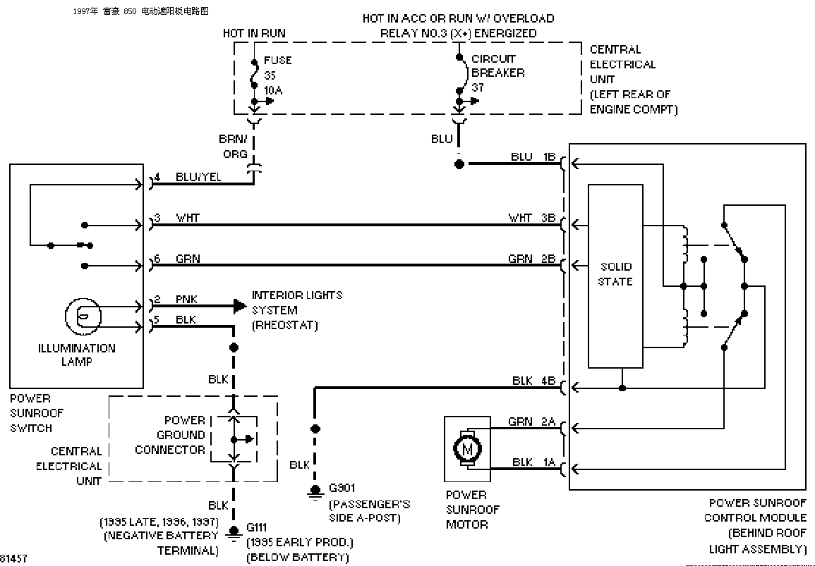 | 电动后视镜电路图 | 电动遮阳板电路图 |