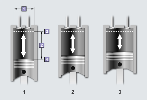 缸径和行程 发动机按照其气缸缸径和活塞行程之间的比率可以分为三种类型。 1. 长行程发动机活塞行程大于气缸缸径的发动机。 2.等径程发动机汽缸缸径和活塞行程尺寸相同的发动机。 3.短行程发动机活塞行程小于气缸缸径的发动机。