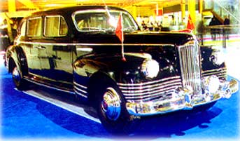 这辆吉斯115的主人是苏联领袖斯大林。该车1950年制造,134千瓦,3档变速器,4座,8缸,排量6000毫升,最高时速135公里。由于采用了大量的防弹材料,车重达7720公斤。吉斯115仅生产了28辆。与其说是轿车,倒不如说是一辆豪华庄严的装甲车。驻足细看,车内端坐的正是威风凛凛的"斯大林",虽然只是一尊蜡像,但仍能使人联想到他那富有传奇色彩的一生。