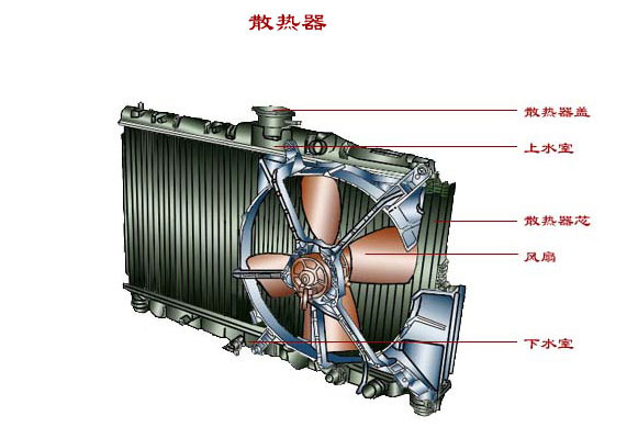 | 散热器又称为水箱,由上水室、散热器芯和下水室等组成。用来增大散热面积,加速水的冷却。 |